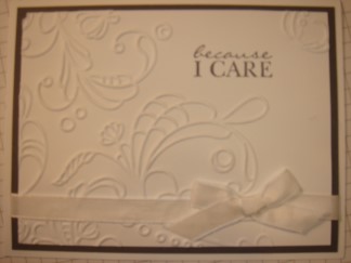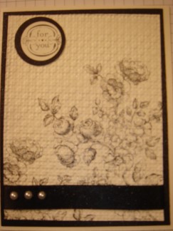 Today I'll be showcasing the final 5 cards in the Ebony & Ivory swap. I hope they have given you wonderful ideas to make. I have also went back & included links to all that have craft blogs (just click on their name) that I am aware of in case you would like to visit any of their blogs as well & show them some love.