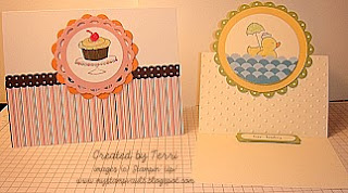 This week's challenge was for Frances & I to make 1/2 a card sampler that she could use in future classes if she so chooses ( I do them for fun as I am only a hobby demo.) out of the Easy Events set. I had to use the top 4 stamps located on pg 57 of the catalog while she got the bottom 4. So here are my 4 cards without further ado.
