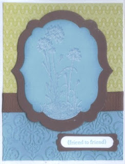 Of course, it is a card I did at Maria's since that is about the only time I stamp anymore. Which is a sad day of events since Christmas is around the corner & all I can do is look at the stamps. Anyone have any good advice of getting over the lost mojo hump?