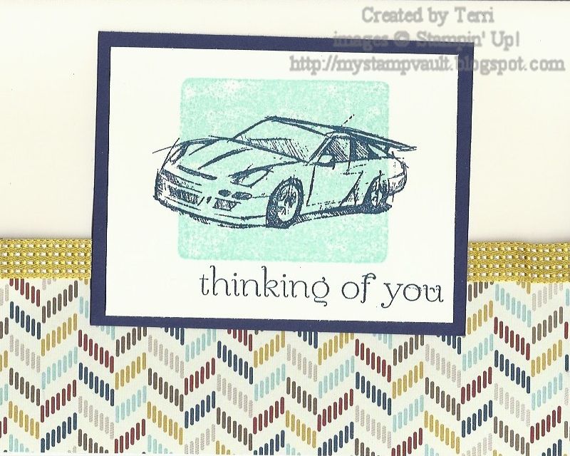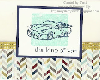 Today I have a card to show you from my friend Maria's monthly class, it uses the Need for Speed set which will be retiring in June. I have had my eye on this set as a nice masculine set, of which, I don't have many of. However, it has eluded my list so it mustn't have been for me. And thus the reason why I promoted the last paragraph, VC Rocks is having a non-traditional blog hop this week, we are using inlinkz this year so head on over to the blog to see more creativity, click HERE.