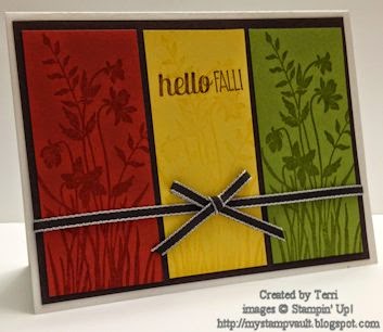 I know I didn't do much stamping last week, being sick has that effect on me of not wanting to do anything, although I did manage to get a card done for Frenzy Friday. I have decided for the time being that I will focus on fall, Halloween (which for someone who doesn't really do these type of cards seems to have lots of sets for it) or Thanksgiving cards. I mean fall really only started last week so I thought I would spend some time doing cards for the season before rushing into Christmas cards or items. I can't promise that none will surface during this time, but I'll try to keep it to a minimum for now.