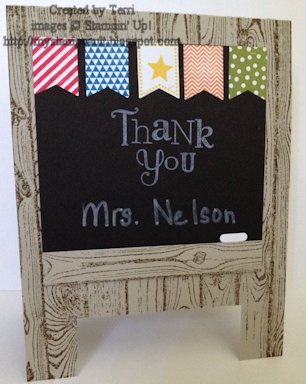 Good mornin' y'all! I hope y'all had a great weekend. I got to stamp & go to a minor leauge baseball game so it made for a pretty good weekend. A few weeks ago, I was contacted by a friend asking if I made cards to sell, UH..... I can what do you need & when do you need it by? Actually I don't make a lot of cards to sell I haven't really ventured into that arena as of yet but it's tempting. Anyways, my friend needed teacher & bus driver cards, ok so not up my alley as I don't have kids except the furry kind. So I hit the internet to see what my fellow demos have made. I knew I had seen some cards that made a punch art bus so I that card was going to be easy, for the teachers not so much but I had a member of my group remind me of these cute easel cards that I could do. DONE! Sorry, I won't even try to go into detail & remember all I used to make these cards except that a lot of punching was done, but I'm glad they're done & that my friend liked them. I can tell you that the bus idea was a mixture of an idea from Connie Babbert & Diana Gibbs. The teacher cards can be found all over the internet.